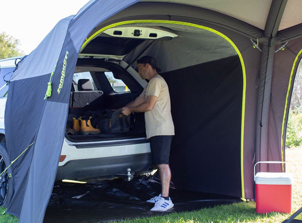 The perfect companion for 4WD adventures, the Zempire RoadieBase 4WD Link connects the Zempire Roadiebase Air Shelter to a variety of 4WD and SUV vehicles. Zipping onto the Roadiebase’s smaller sides, this link provides protected access to the vehicles boot, creating a fully connected vehicle and shelter hub.