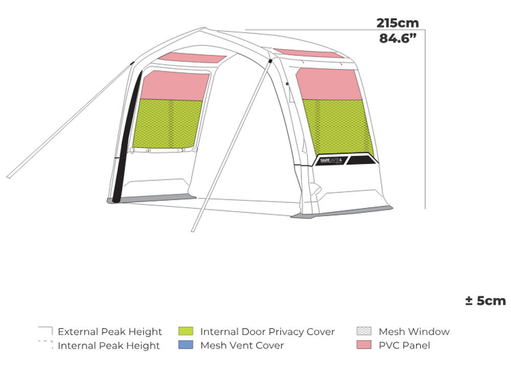 - Colour Coded & Numbered Zippers: Colour coded and numbered zippers allow for an easy connection to Shapeshifter 4 Living or Awning Modules or an Awning Wall Set.