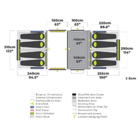 - Superior Climate Control: Enjoy optimal light and airflow with large mesh panels, side vents, and 3-way windows with tinted PVC skylights. The included Heat Shield Liners further enhance temperature regulation and condensation control in the sleeping zones.