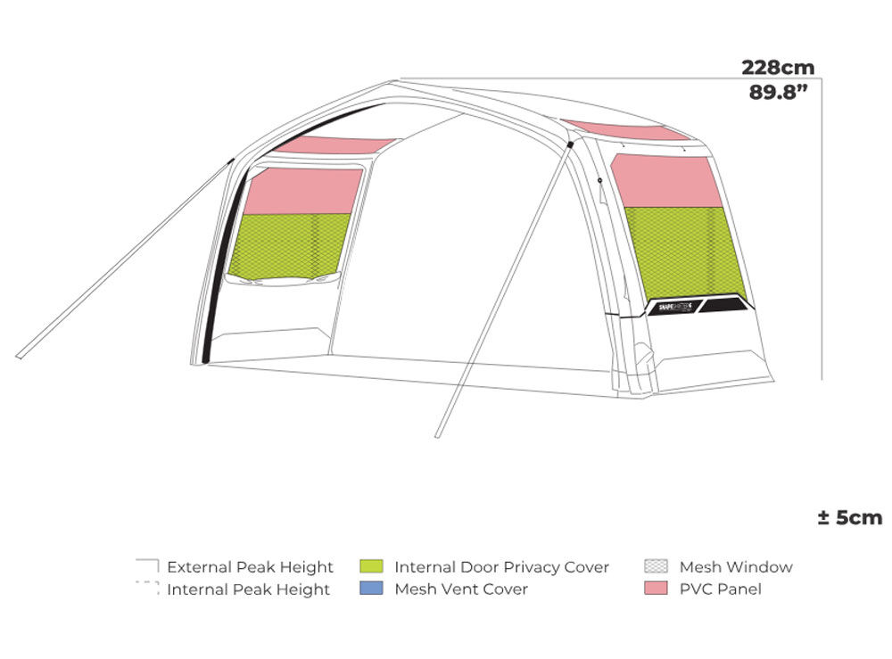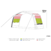 - Colour Coded & Numbered Zippers: Colour coded and numbered zippers allow for an easy connection to Shapeshifter 6 Sleeping or Awning Modules or an Awning Wall Set.
