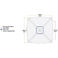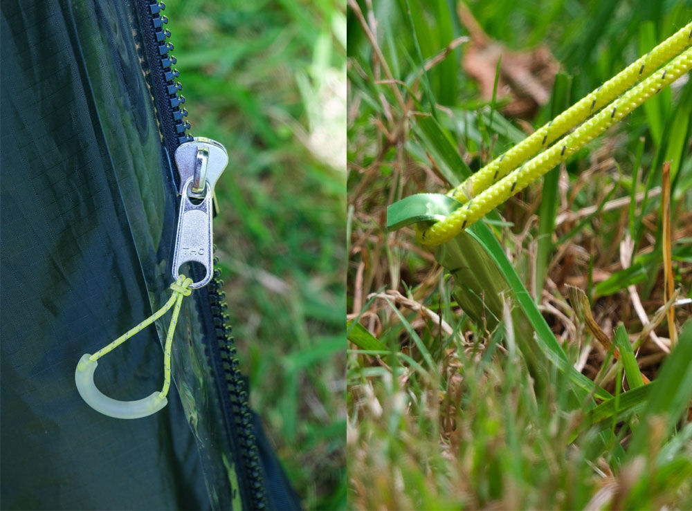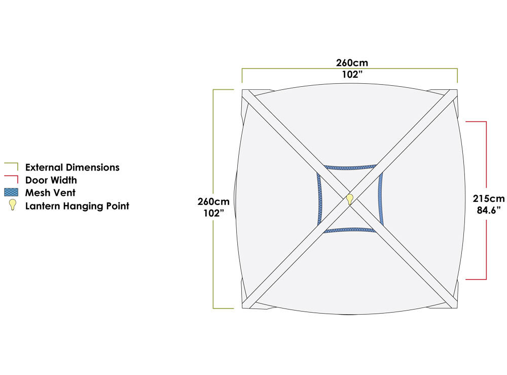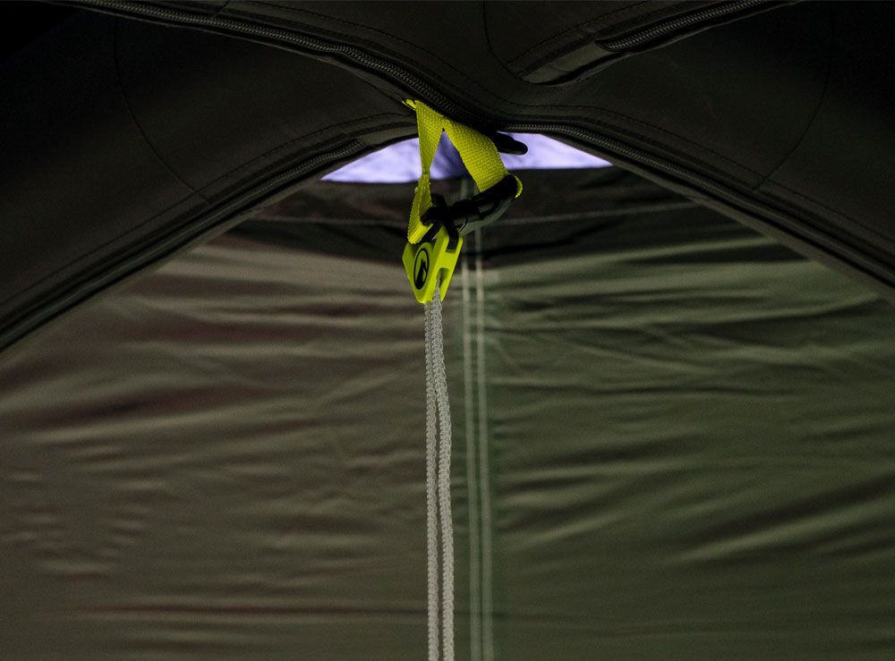 Lantern Attachment: Hi-vis webbing strap with quick release buckle provides a secure attachment point for a lantern inside the shelter.